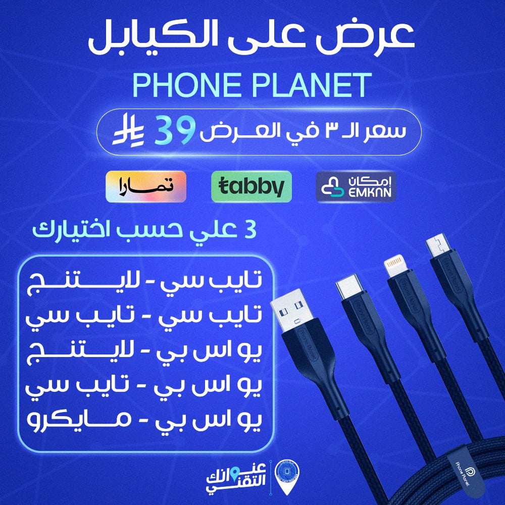 اختر 3 كيبل بجودة عالية من Phone Planet لتناسب جميع أجهزتك واحتياجاتك.
