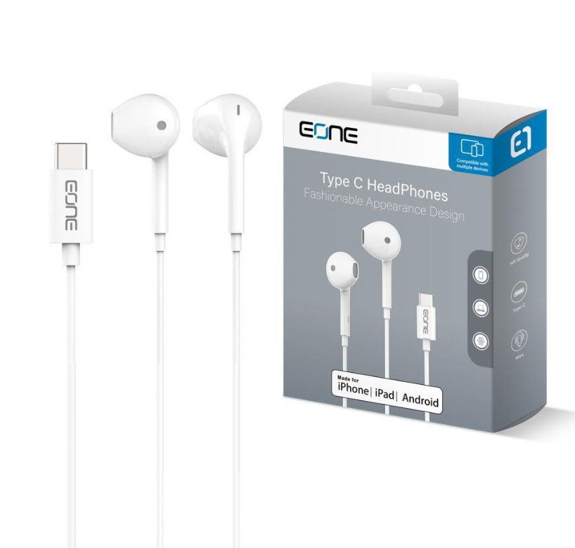 ماهي مواصفات السماعة؟؟ نوع الميكروفون: ميكروفون مدمج. الموديلات المتوافقة: متوافقة مع أجهزة الآيفون والأندرويد بمنفذ Type-C. تحكم الصوت: تحكم الصوت من السلك. نوع المنتج: سماعة أذن. التصميم: سماعات داخل الأذن دائرية. اللون: أبيض. الوزن: 20 جرام (0.71 أوقية). مناسب للجنسين: نعم. تقنية التوصيل: سلكي. ماهي أبرز المميزات التقنية؟؟ جودة صوت عالية: استمتع بتجربة صوتية فائقة مع سماعة EONE Type-C. مايكروفون مدمج: يتيح لك إجراء المكالمات والتحكم بالصوت بسهولة. تصميم أنيق ومريح: تصميم دائري يناسب الأذن بشكل مريح. خفيفة الوزن: بوزن 20 جرام فقط، مما يجعلها مريحة للاستخدام اليومي. متوافقة مع أجهزة آبل والأندرويد: متوافقة مع جميع أجهزة الآيفون والأندرويد التي تحتوي على منفذ Type-C. ضمان لمدة 24 شهر: راحة البال وضمان الجودة.
