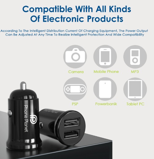 شاحن سيارة 2 منفذ يو اس بي 12 واط من فون بلانت