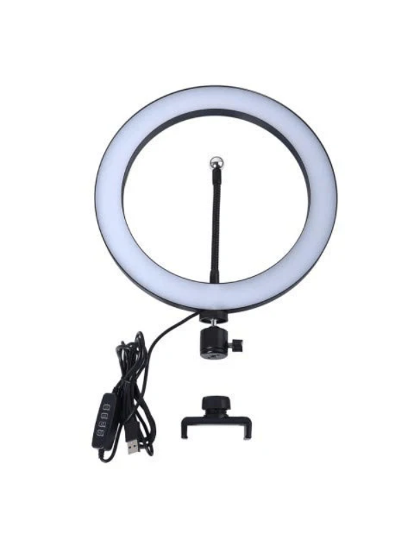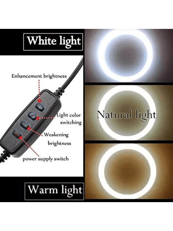 حامل هاتف مرن من الحلقة: - بدلاً من وضع الهاتف المحمول خارج الحلقة، فإن الضوء الحلقي الخاص بنا كبير بما يكفي بحيث يمكنك وضع هاتفك المحمول في الحلقة لتحقيق أقصى استفادة من هذا الضوء الدائري.